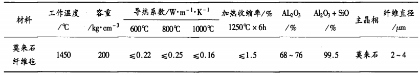 表2 莫來(lái)石纖維氈理化指標(biāo)表